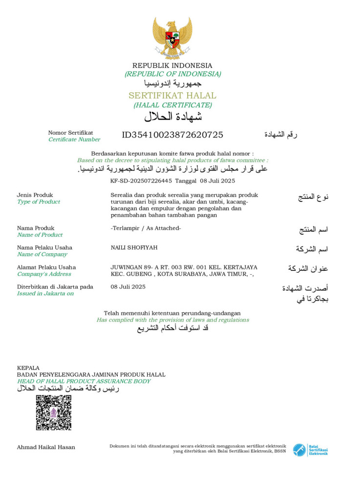 Penerbitan sertifikat dengan nomor ID35410023872620725 pada 8 Juli 2025 ini menjadi bukti nyata bahwa produk "Asinan Trio Maut" telah melalui proses verifikasi dan memenuhi standar kehalalan yang ketat. Pencapaian ini menegaskan komitmen SMKN Wonosalam dalam menghasilkan produk yang tidak hanya berkualitas, tetapi juga terjamin kehalalannya sesuai prinsip syariah.